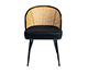 The Cainback Chair in black features black metal legs and a black boucle cushion. It has a rattan backrest.