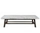 The Aura Coffee Table offers a wood base and marble top. It can be rented alongside the rest of our Aura collection.