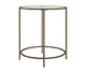 Goldie End Table The Goldie End Table features metal legs and a glass top. Contact Lavish Event Rentals to rent Goldie End Table Dimensions 19.7"Diameter | 21.6"H